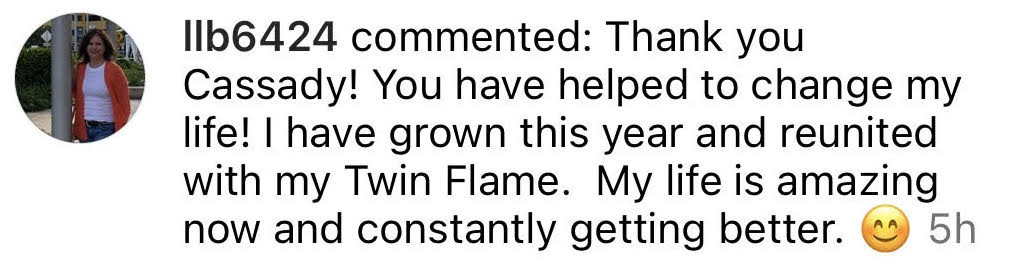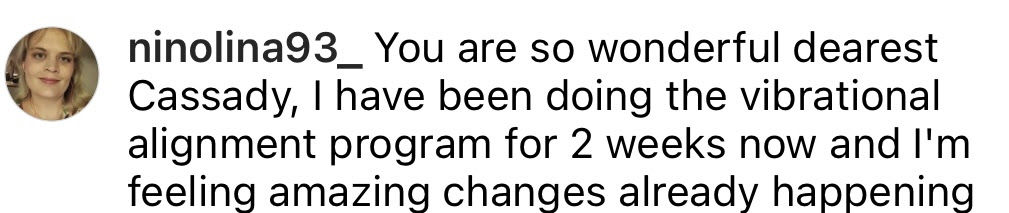 "I started with your free toolkit and immediately felt results so much that I had to get the full program and wow! I’ve been doing it consistently and I love the energy clearings and exercises. I feel lighter, and my lover and I are so much closer. Every day gets better and better. And since my vibration has become higher and higher, I’m attracting in wonderful opportunities and amazing abundance as well. I’m so grateful for your work, Cassady. Thank you!"